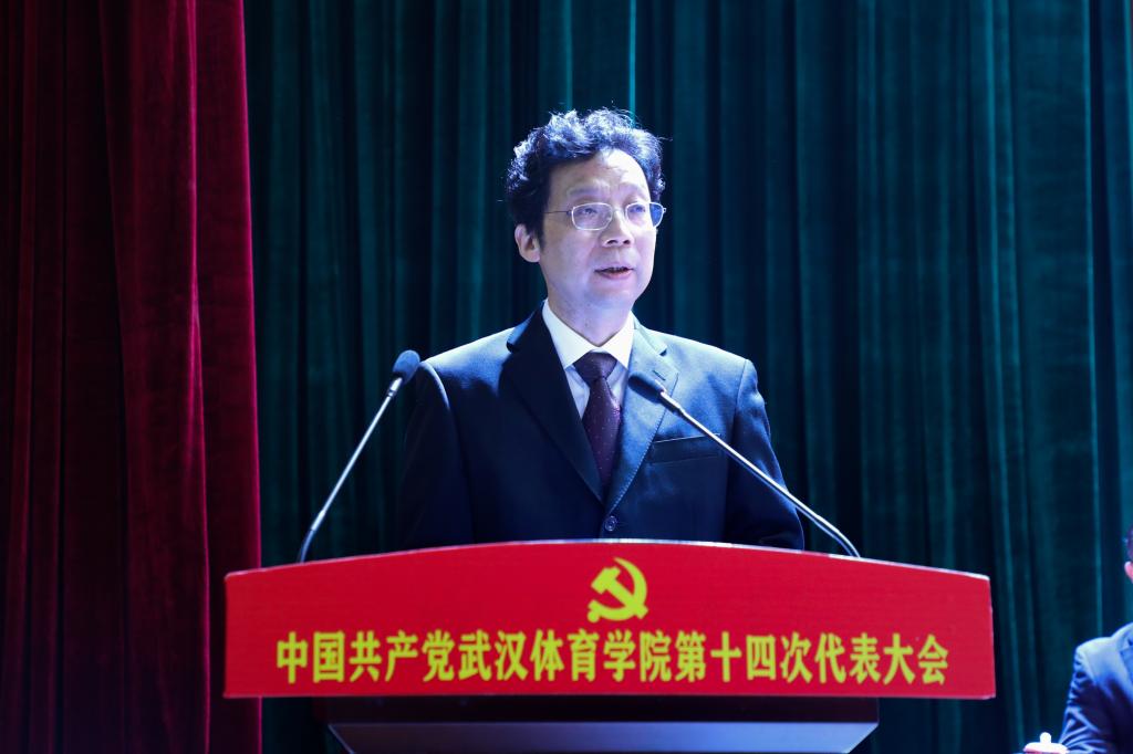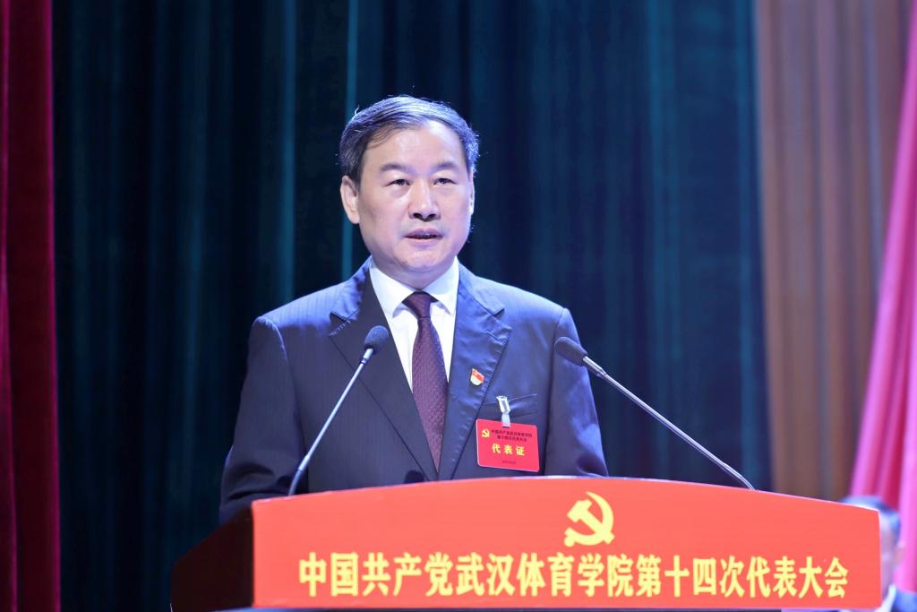 余学敏代表省委教育工委向大会的召开表示热烈祝贺。他表示,中共武汉体育学院第十四次代表大会是在“十四五”开局和全面建设社会主义现代化新征程开启之年召开的一次十分重要的会议,意义重大、影响深远。他指出,武汉体育学院第十三次党代会以来,学校党委高举习近平新时代中国特色社会主义思想伟大旗帜,充分发挥领导核心作用,以改革促发展,以实干促提升,在人才培养、科学研究、社会服务、文化传承创新、国际交流合作等方面都取得了长足的进步,为经济社会发展作出了积极贡献。余学敏要求,一是要以政治建设为统领,使学校始终成为坚持党的领导的坚强阵地。二是要落实立德树人根本任务,使学校始终成为培养社会主义建设者和接班人的重要基地。三是要贯彻新发展理念,使学校始终成为服务地方发展的示范高地。要充分发挥学科优势和办学特色,加快推进体育改革创新步伐,更新体育理念,借鉴国内外有益经验,推动湖北体育产业高质量发展,构建更高水平的全民健身公共服务体系,为健康湖北战略注入新的活力和动力,为“建成支点、走在前列,谱写新篇”作出学校新的更大贡献。