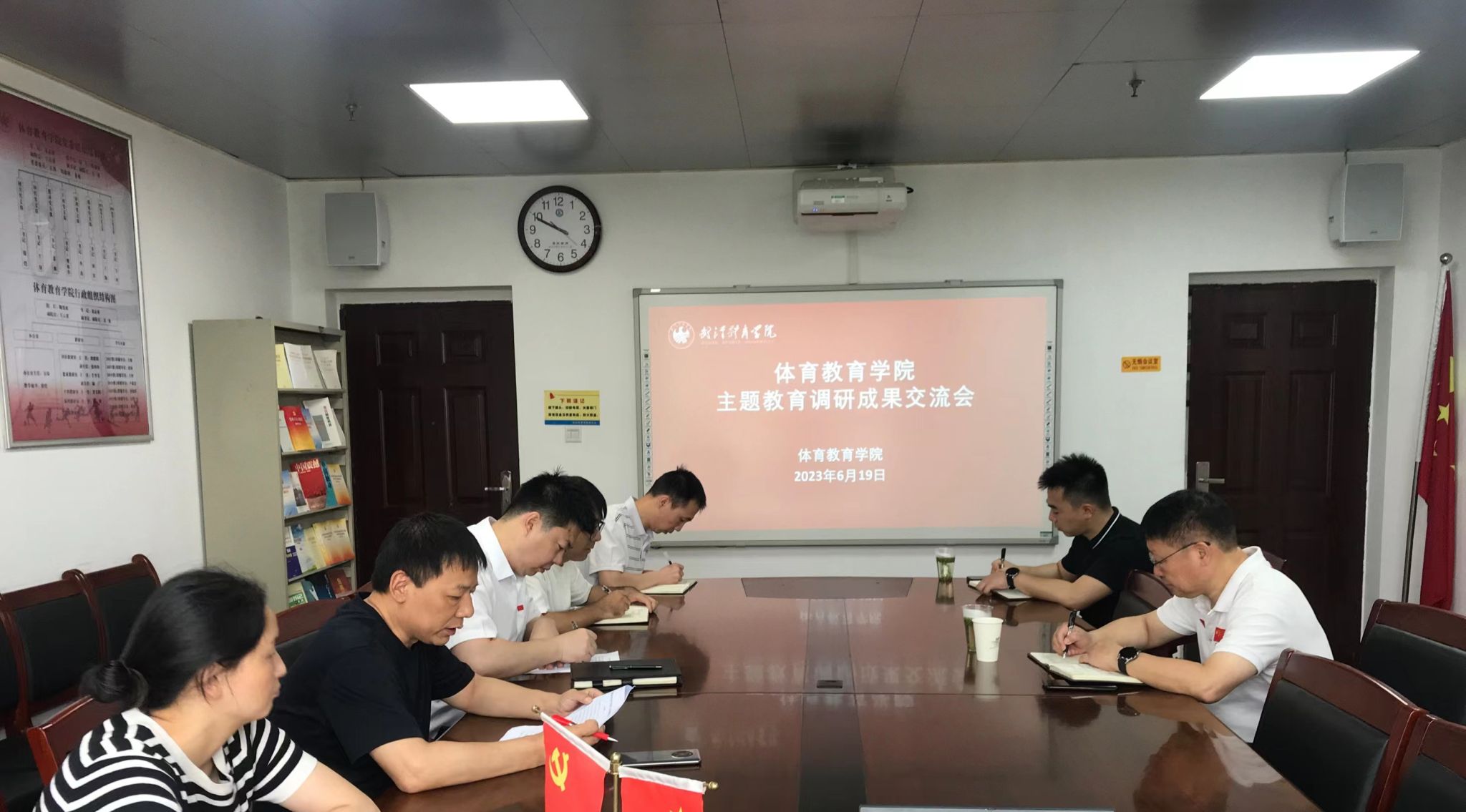 6月19日、20日,党委副书记、院长吕万刚分别到体育教育学院、国际教育学院参加主题教育调研成果交流会。