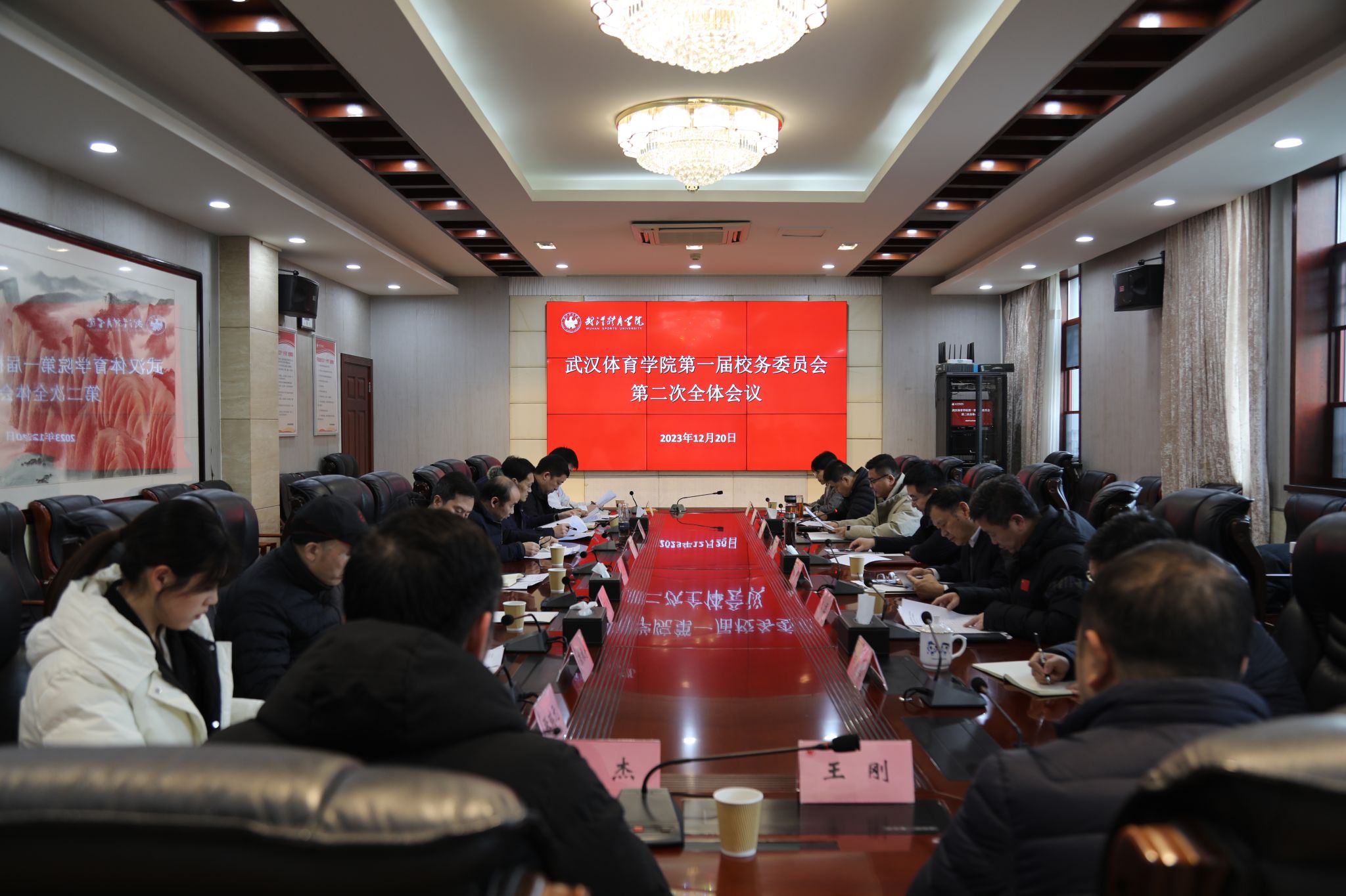 12月20日下午,武汉体育学院第一届校务委员会第二次全体会议召开。党委书记陈继平,校外委员蒋志学,校领导张飙、朱磊、潘高峰等校务委员会成员出席会议。会议由党委书记陈继平主持。