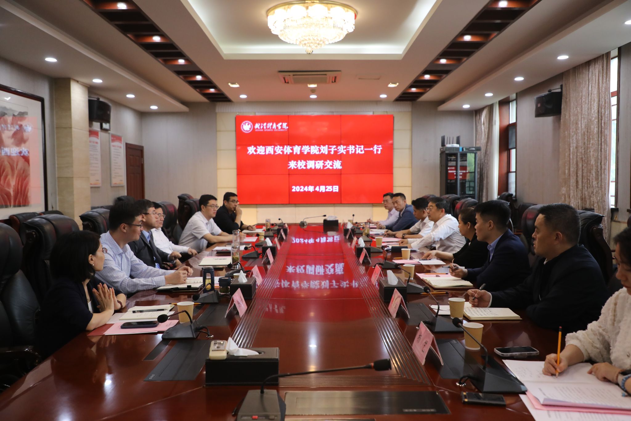 4月25日,西安体育学院党委书记刘子实,党委委员、副院长谢英一行来校调研交流。学校党委书记陈继平,党委常委、副院长刘彦博热情接待,并开展座谈交流。