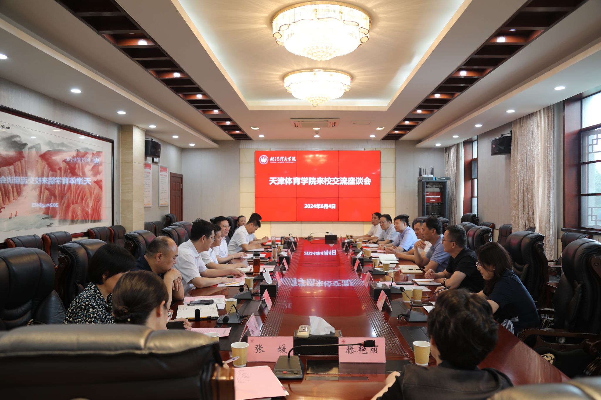 新闻网讯(通讯员王婷)6月4日,天津体育学院党委书记张立顺来校考察交流。校党委书记陈继平,党委副书记、副院长张飙,党委常委、副院长潘高峰参加座谈交流。