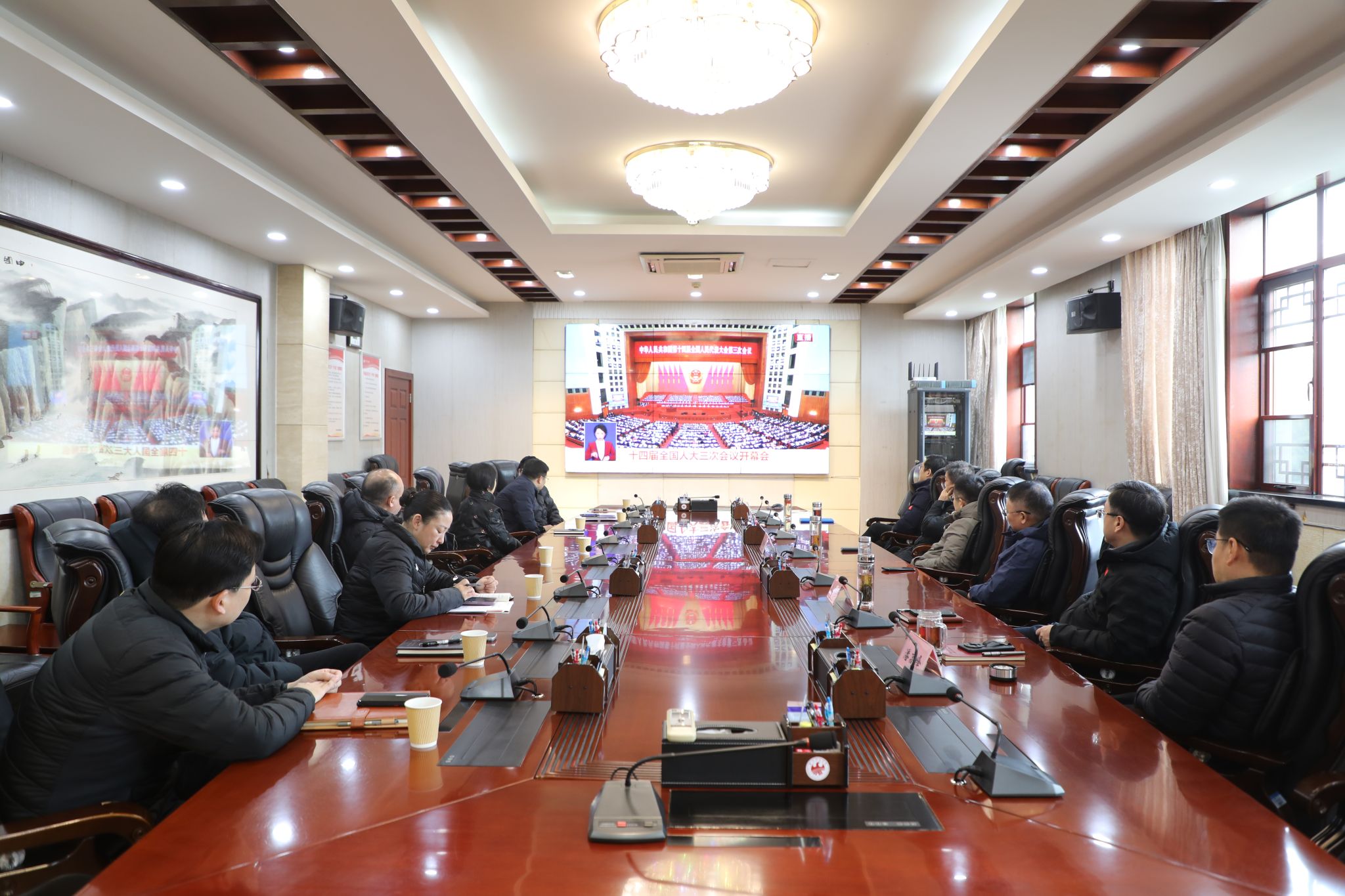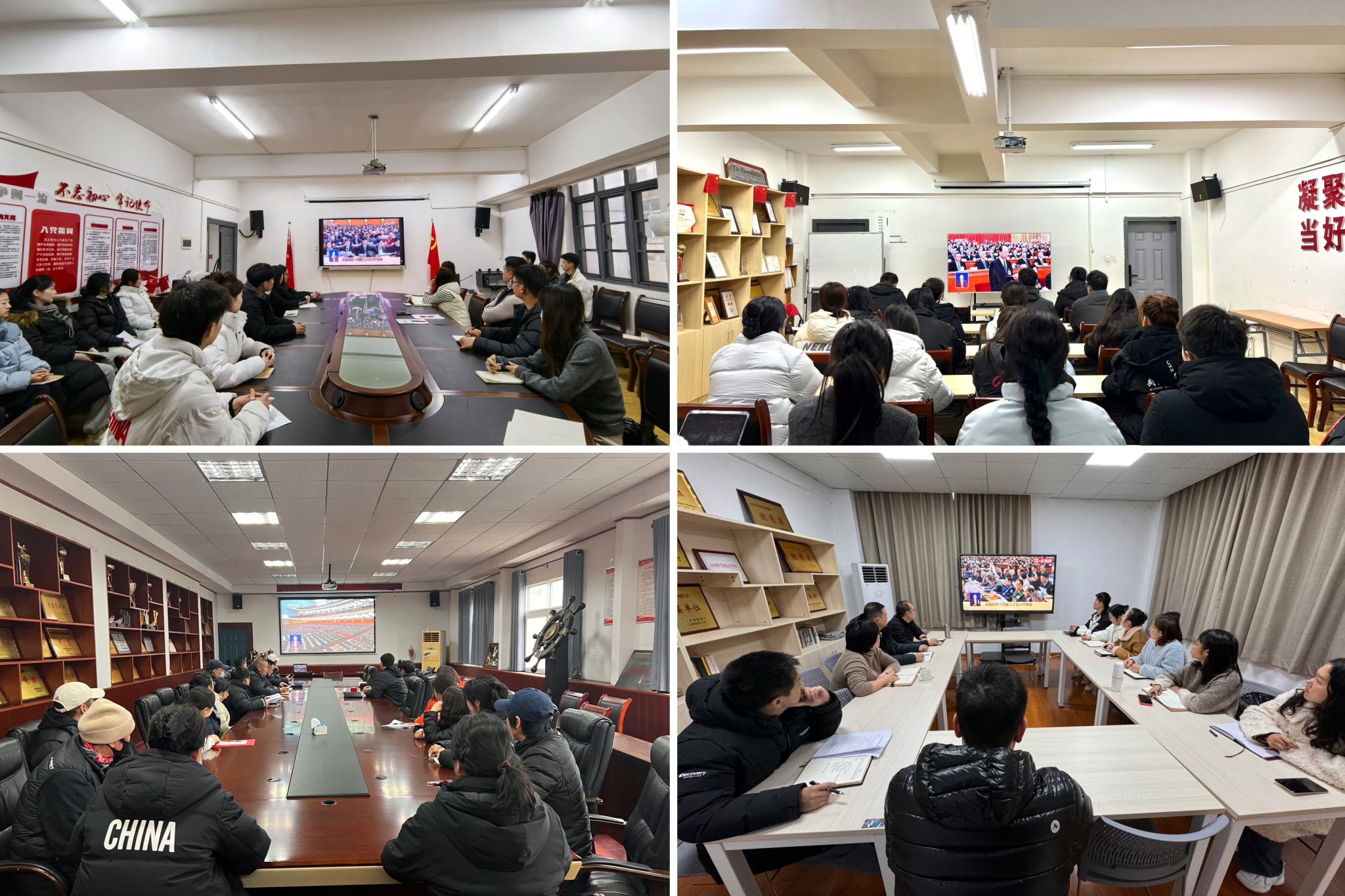 学校党委在行政楼315会议室设立集中收看点。校领导、党委委员齐聚一堂,共同观看全国两会开幕会电视直播,喜迎盛会的胜利召开。