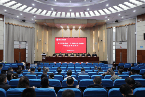 开班式后,举行党的二十届四中全会精神首场宣讲报告会,党委书记陈继平作宣讲报告。
