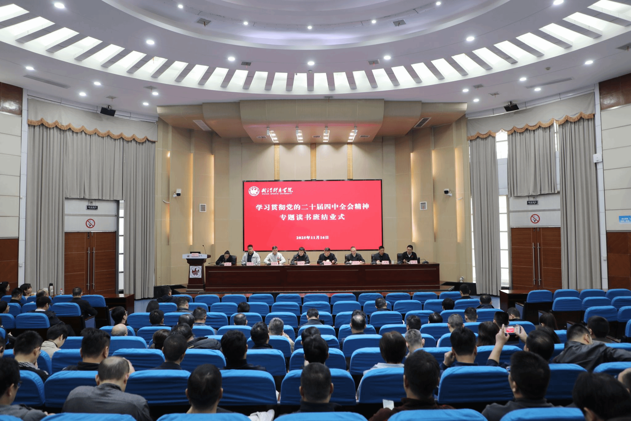 新闻网讯(通讯员张丹)11月12日至16日,学校举办党委理论学习中心组暨中层干部学习贯彻党的二十届四中全会精神专题读书(培训)班。全体校领导、中层干部、党务干部代表通过个人自学、集中研学、交流研讨等形式参加学习。