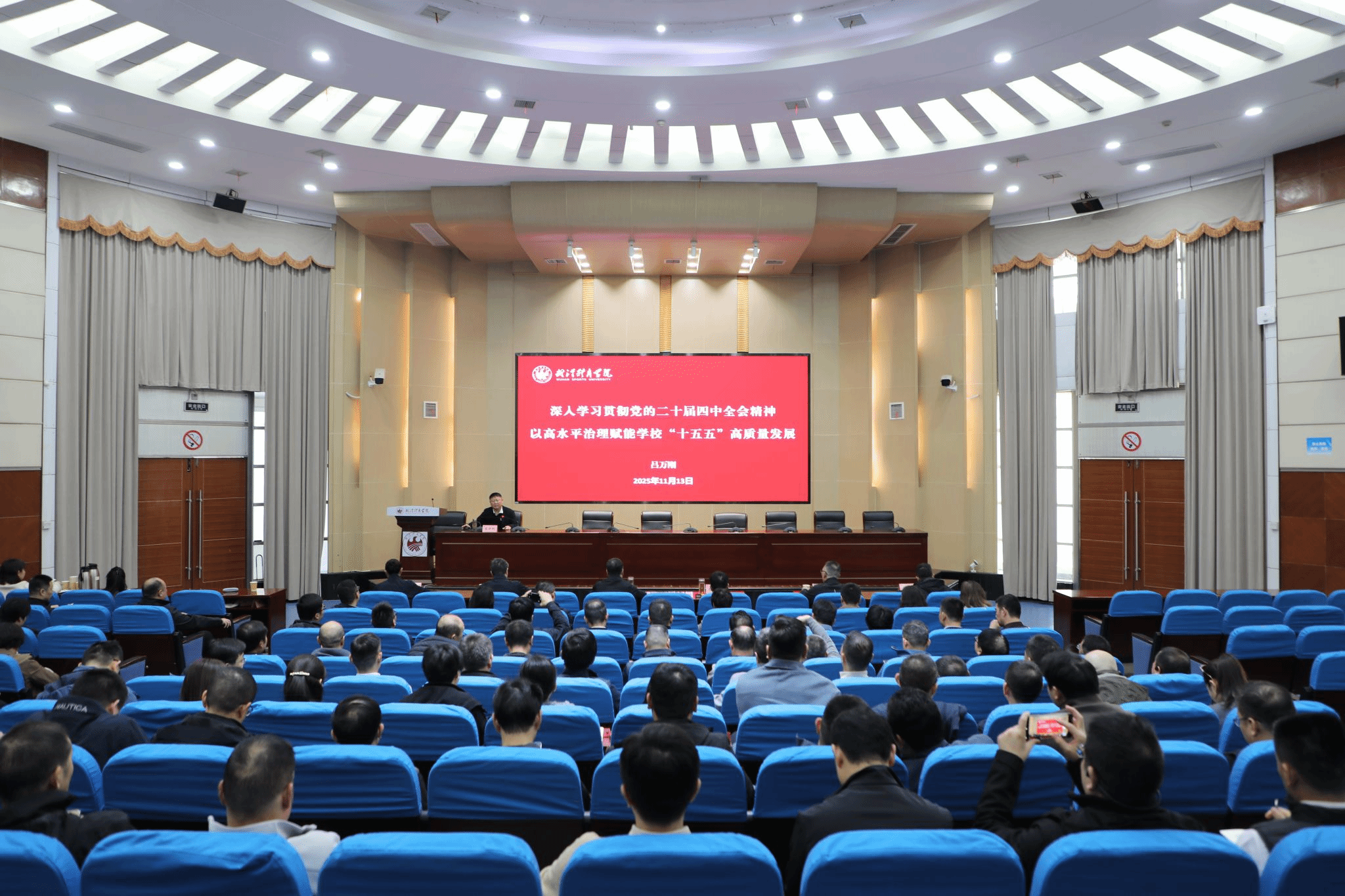 11月13日下午,党委副书记、校长吕万刚以“深入学习贯彻党的二十届四中全会精神 以高水平治理赋能学校‘十五五’高质量发展”为题作宣讲。吕万刚围绕深刻认识党的二十届四中全会对体育事业的战略指引、全面把握“十五五”体育发展核心任务、以高质量规划引领学校发展等方面展开。他指出,要以高水平治理赋能“十五五”高质量发展,聚焦立德树人根本任务,深化体教融合、体卫融合,强化科技赋能与学科交叉,推动体育人才培养体系现代化,为建设中国前列、世界一流应用研究型体育大学贡献智慧和力量。