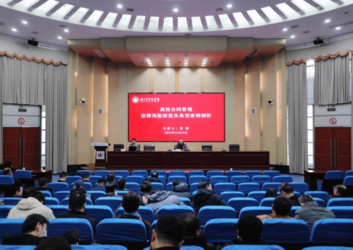 会上,湖北经济学院党委常委、副校长,中南财经政法大学文澜特聘教授、博士生导师张忠民应邀来校作习近平法治思想专题辅导报告。教师工作部部长、人事处处长张广弟,足球学院党委书记王超围绕学习贯彻习近平法治思想作研学交流发言。法律顾问作《高校合同管理法律风险防范及典型案例剖析》专题讲座,重点围绕合同起草关键要求、合同审批与分级流程、合同履行与动态管理、合同风险处置要点等内容展开。软件工程师现场讲解并演示学校合同管理信息化平台的操作流程。