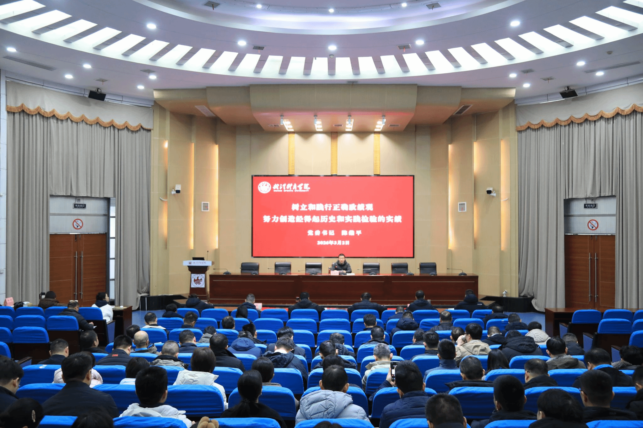 开班式后,陈继平围绕树立和践行正确政绩观的重大意义、丰富内涵、科学方法和实践要求四个方面展开讲解。他深入阐释“政绩为谁而树、树什么样的政绩、靠什么树政绩”的核心问题,剖析政绩观错位的典型问题与危害,明确把握“三对关系”、做到“三要三不要”、防止“七种倾向”的实践方法。并结合学校办学治校实际,从锤炼党性、为民造福、推动高质量发展、真抓实干四个维度,对全校党员干部践行正确政绩观提出明确要求。